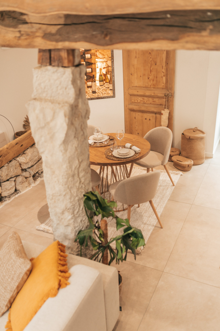 Un lieu qui invite à la détente. Il comprend une cuisine ouverte sur le séjour entièrement équipée et une cave à vin de 6m2. A l'étage , vous y trouverez une chambre & un sauna.
